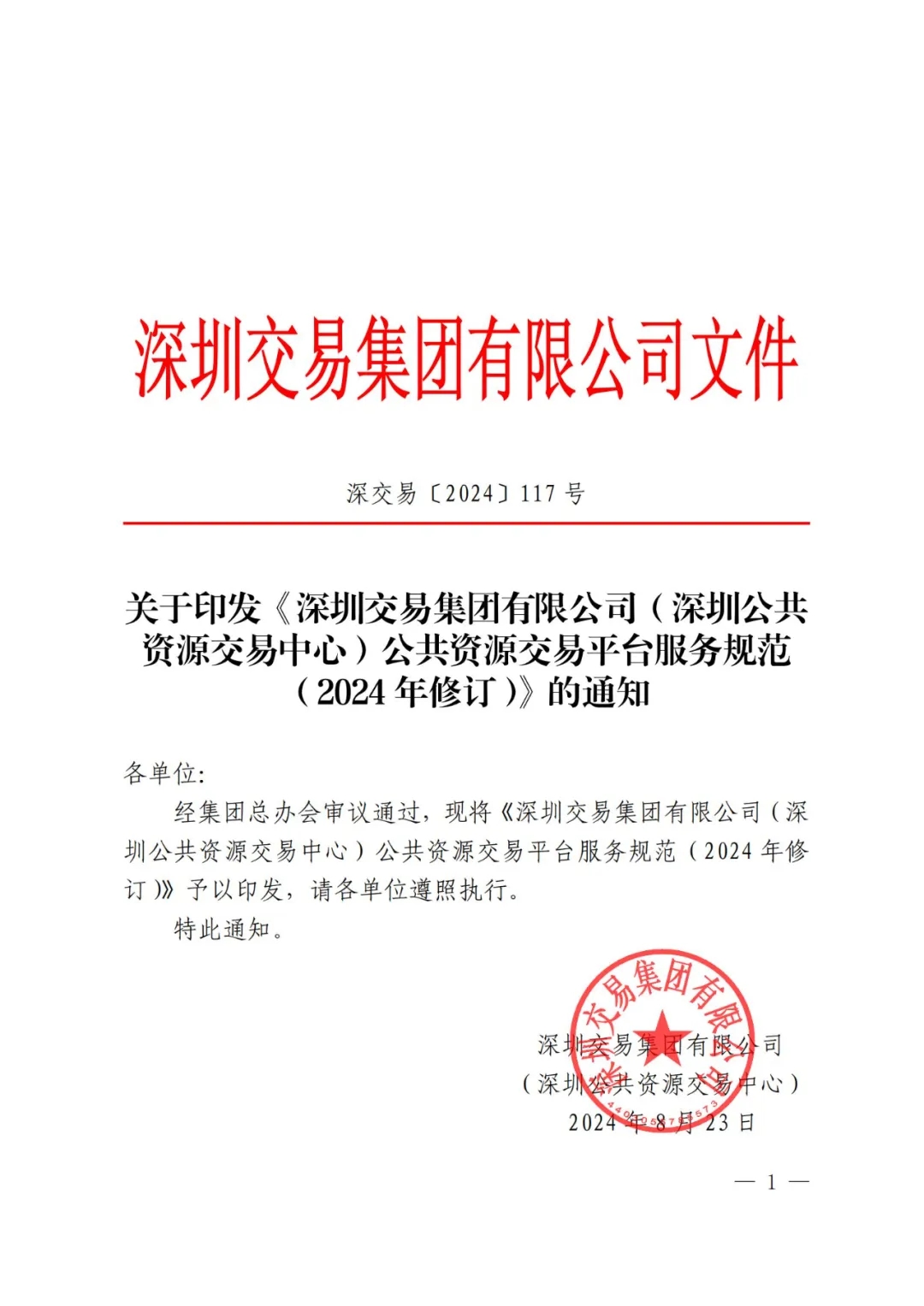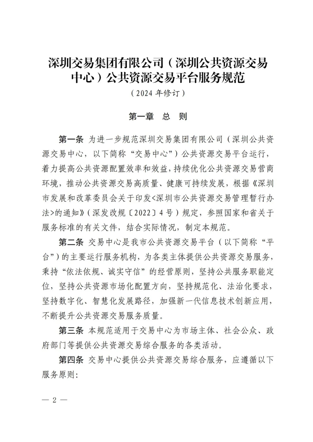 深圳市公共資源交易中心關于印發(fā)《深圳交易集團有限公司(深圳公共資源交易中心)公共資源交易平臺服務規(guī)范(2024 年修訂)》的通知